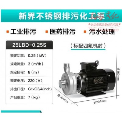 首页 > 建筑建材 > 电动工具 > 新界304/316不锈钢排污泵耐腐蚀离心自吸泵耐酸碱化工泵 25LBD-0.25S(220V) (zhyghf_23001170)SKU:yzwhyp913300