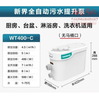 新界污水提升泵家用别墅地下室全自动污水提升器切割马桶排污泵 WT400-C【垂直输送8m】 (zhyghf_23001174)SKU:yzwhyp913323