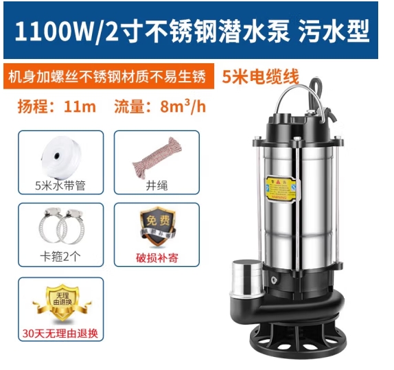 首页 > 建筑建材 > 电动工具 > 上海人民潜水泵220V家用不锈钢高扬程抽水机农用灌溉污水泵小型抽水泵浇菜浇花水泵机器 不锈钢污水泵1100瓦2寸 (zhyghf_23001204)SKU:yzwhyp913589