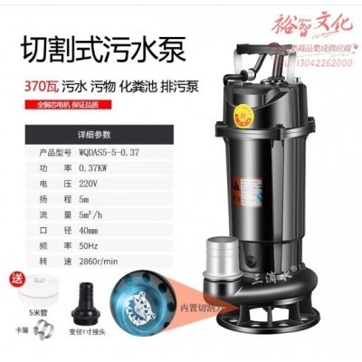 切割式污水泵家用沼气化粪池抽粪养殖场排污泵泥浆泵带铰刀潜水泵 370瓦1.5寸切割式污水泵 (zhyghf_23001268)SKU:yzwhyp913613