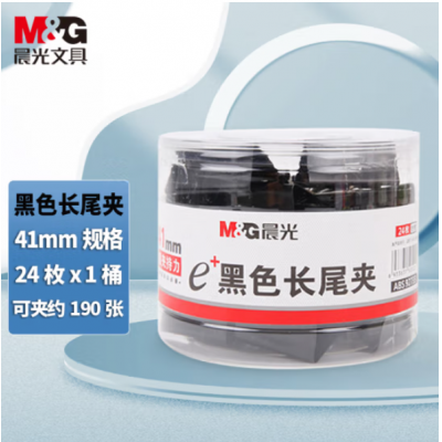 晨光(M&G) 长尾票据夹 办公夹子 黑色燕尾夹大中小号蝴蝶夹凤尾夹 41mm(ABS92733)24个/筒 1筒