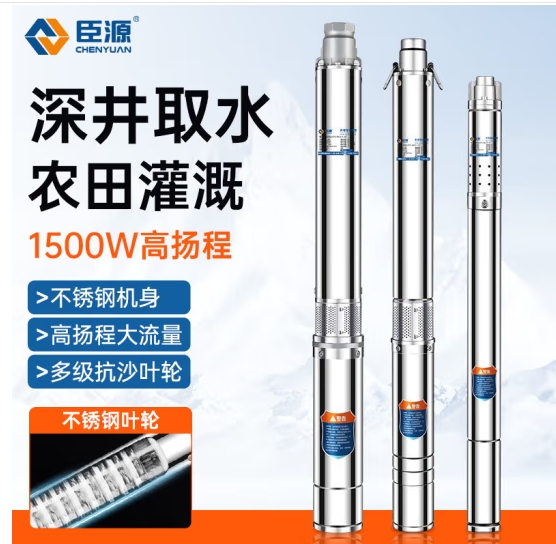 臣源不锈钢深井泵农用高扬程潜水泵220v家用井水灌溉深水抽水机潜水泵 (zhyghf_23001272)SKU:yzwhyp913678