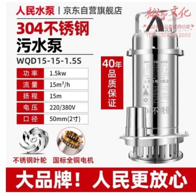 人民机电304不锈钢人民潜水泵耐腐蚀高扬程抽水排污上海切割式污水泵 (zhyghf_23001233)SKU:yzwhyp913793