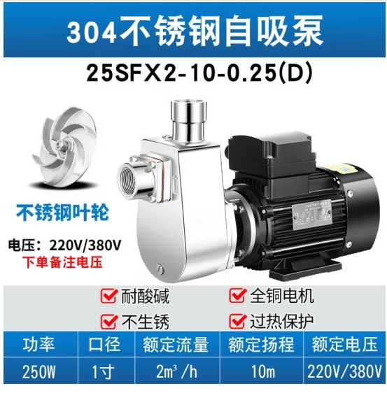 首页 > 建筑建材 > 电动工具 > 人民水泵上海人民不锈钢自吸泵耐腐蚀耐酸碱304/316工业水泵防腐蚀化工泵 304不锈钢自吸泵250瓦1寸 (zhyghf_23001215)SKU:yzwhyp913965