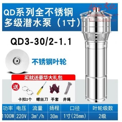 首页 > 建筑建材 > 电动工具 > 上海人民不锈钢QD多级潜水泵高压220v高扬程家用井水大流量农田灌溉抽水机 1100W两叶轮1寸 3方30米 220V (zhyghf_23001218)SKU:yzwhyp913978