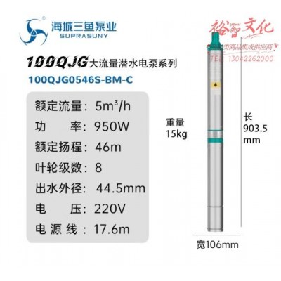 首页 > 建筑建材 > 电动工具 > 三鱼牌不锈钢深井泵100QJG系列大流量高扬程家用农用灌溉井用水泵 5吨-46米扬程-950瓦 单相220V (zhyghf_23001339)SKU:yzwhyp914207