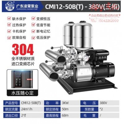 首页 > 建筑建材 > 电动工具 > 凌霄CMI不锈钢变频增压泵220V一用一备380V宾馆酒店恒压供水水泵 24方50米3.0千瓦2寸12-50BTx2 380V (zhyghf_23001354)SKU:yzwhyp914267