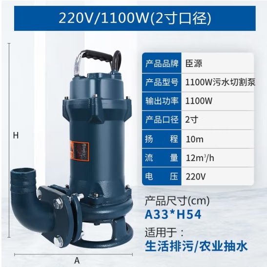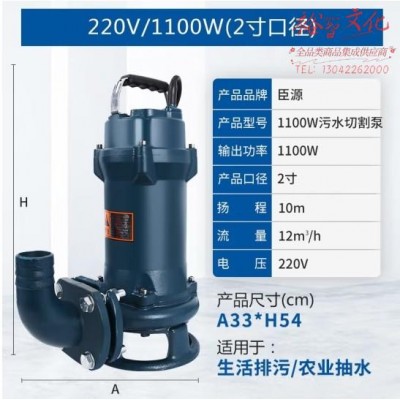 臣源切割式污水泵220V潜水泵家用农用排污抽化粪池猪粪沼气池无堵塞 (zhyghf_23001290)SKU:yzwhyp914474
