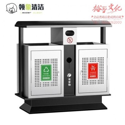 领象 金属大户外垃圾桶大号果皮箱连体分类垃圾桶小区公园市政环卫 镀锌板双分类(zhyghf_51001156)SKU:yzwhyp914579