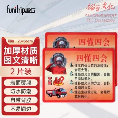 趣行 四懂四会 消防宣传墙贴标识牌商场厂房社区消防安全检查2片装(zhyghf_221716302)SKU:yzwhyp914761