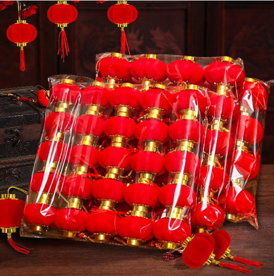 新新精艺 灯笼结婚装饰小灯笼挂饰乔迁婚房布置用品盆景植绒挂件4#30个装 (zhyghf_3306315)SKU:yzwhyp914791