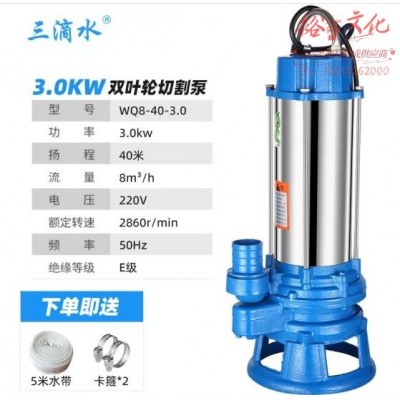 三滴水切割式污水泵家用潜水排污泵泥浆泵抽化粪池猪粪沼气池带铰刀 3KW220V双叶轮切割泵 (zhyghf_23001388)SKU:yzwhyp914847