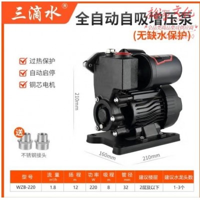 首页 > 建筑建材 > 电动工具 > 三滴水家用自吸泵全自动热水器自来水增压泵加压泵全屋主管道增压抽水泵 220瓦 全自动自吸增压泵 (zhyghf_23001390)SKU:yzwhyp914869