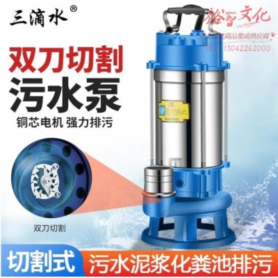 首页 > 建筑建材 > 电动工具 > 三滴水不锈钢切割式污水泵潜水泵家用抽化粪池猪粪沼气池排污泵泥浆泵 370瓦1.5寸220V不锈钢切割污水泵 (zhyghf_23001414)SKU:yzwhyp914952