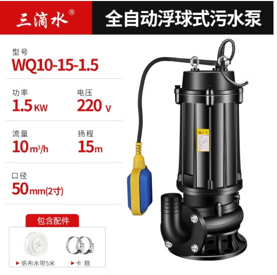 首页 > 建筑建材 > 电动工具 > 三滴水带浮球全自动污水泵化粪池排污泵泥浆防汛排涝集水井提升泵潜水泵 1.5KW220V2寸浮球自动污水泵 (zhyghf_23001428)SKU:yzwhyp914977