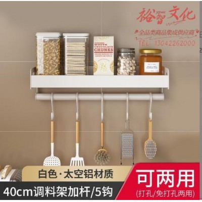 厨房置物 架壁挂式太空铝免打孔调料架 皎月白40cm带杆 (zhyghf_1230398)SKU:yzwhyp914987