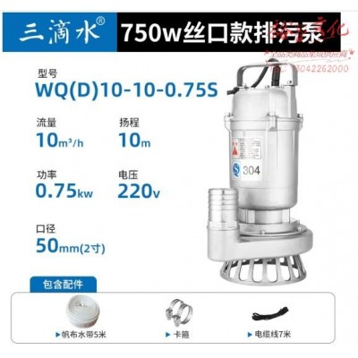 首页 > 建筑建材 > 电动工具 > 三滴水304不锈钢耐腐蚀酸碱化工污水泵排污泵泥浆泵潜水泵沼气化粪池泵 750瓦220V50丝口 (zhyghf_23001435)SKU:yzwhyp915003