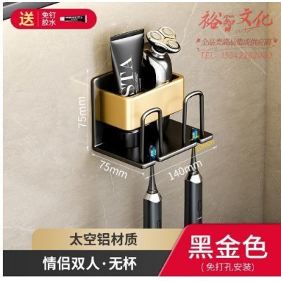 枪灰 牙刷置物 架 免打孔漱口杯牙杯壁挂式收纳架 黑金-两人铝牙刷架(免打孔) (zhyghf_1230406)SKU:yzwhyp915010