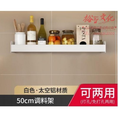 厨房置物 架壁挂式太空铝免打孔调料架 皎月白50cm无杆 (zhyghf_1230400)SKU:yzwhyp915046