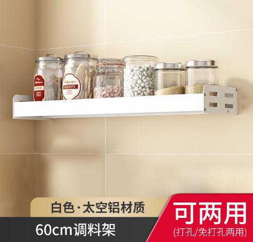 厨房置物 架壁挂式太空铝免打孔调料架 皎月白60cm无杆 (zhyghf_1230401)SKU:yzwhyp915047