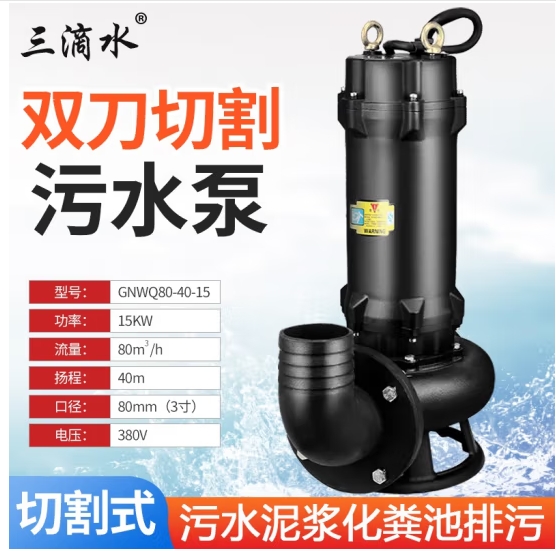 首页 > 建筑建材 > 电动工具 > 三滴水切割式污水泵潜水泵防汛排涝排污泵泥浆泵抽沼气化粪池猪粪带铰刀 15KW380V3寸切割式污水泵 (zhyghf_23001432)SKU:yzwhyp915075