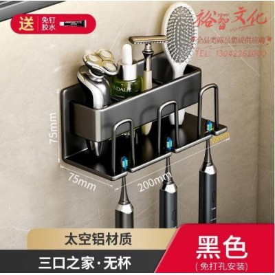 牙刷置物 架 免打孔漱口杯牙杯壁挂式收纳架 黑色-三人铝牙刷架(免打孔) (zhyghf_1230410)SKU:yzwhyp915096