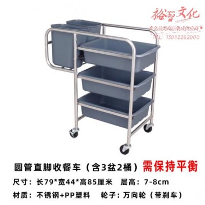 首页 > 用具 > 其他厨房用具 > 惠利得 加厚餐厅收碗车收餐车 饭店快餐店食堂不锈钢手推撤餐餐盘收集车 圆管直脚收餐车整套 (zhyghf_23097407)SKU:yzwhyp915117