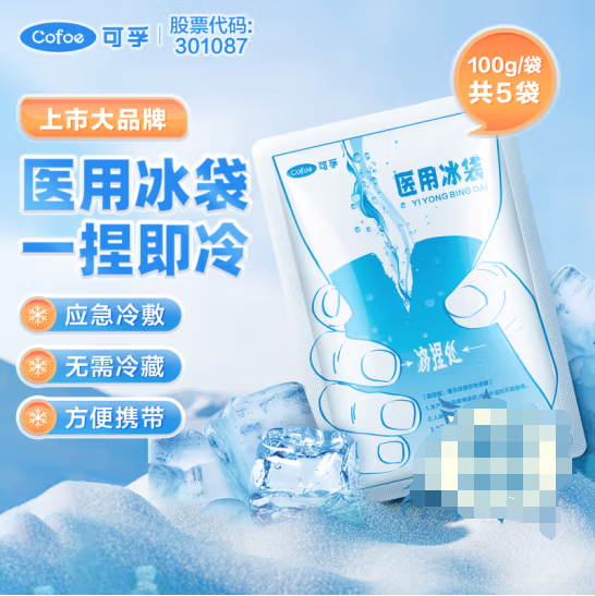 可孚 一次性冰袋100g*5袋 保鲜冷敷冰块降温退热凉爽冷藏速冻冰袋 (zhyghf_221724904)SKU:yzwhyp915251