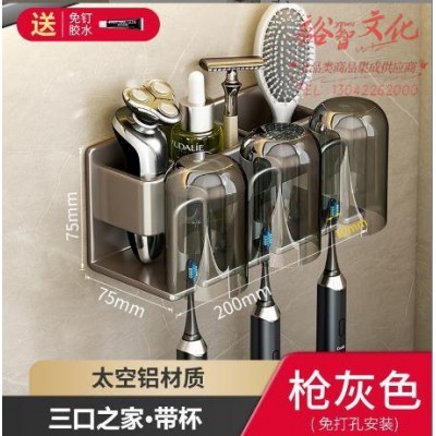 牙刷置物 架 免打孔漱口杯牙杯壁挂式收纳架 枪灰-三人铝牙刷架 3漱口杯(免打孔) (zhyghf_1230413)SKU:yzwhyp915253
