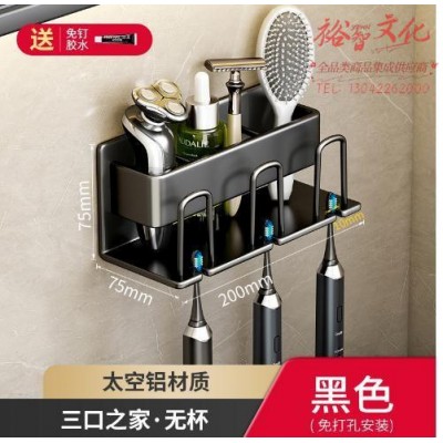枪灰 牙刷置物 架 免打孔漱口杯牙杯壁挂式收纳架 黑色-两人铝牙刷架(免打孔) (zhyghf_1230409)SKU:yzwhyp915279