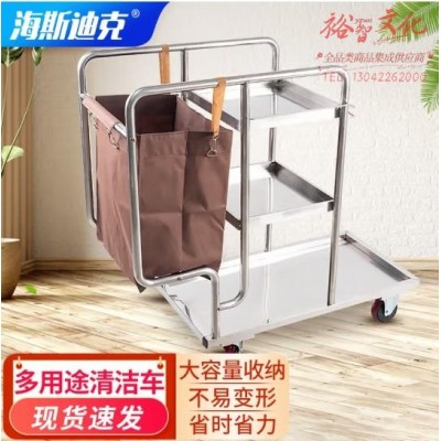 海斯迪克 HK-731 不锈钢多用途清洁车 低噪轮服务车 保洁车杂物收集多功能手推清洁车 (zhyghf_37001427)SKU:yzwhyp915414