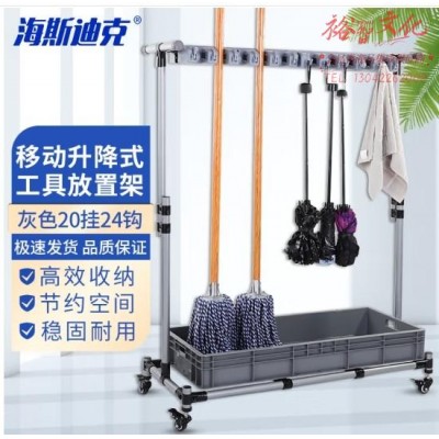 海斯迪克 HKZ-76 多功能移动升降式清洁工具放置架 拖把挂架放扫把收纳 灰色20挂24钩 (zhyghf_37001424)SKU:yzwhyp915416
