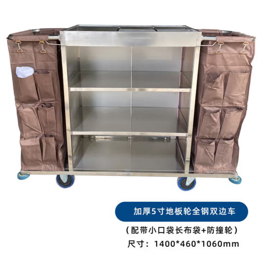 惠利得 布草车酒店宾旅馆烤漆客房口双边楼层清洁工作收集打扫手推服务车 加厚5寸地板轮全钢双边 (zhyghf_23098025)SKU:yzwhyp915476