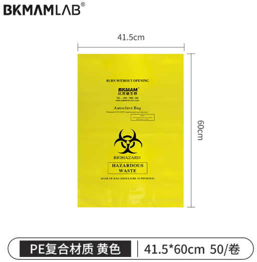 首页 > 用具 > 其他厨房用具 > 比克曼生物(BKMAM)危险品处理袋医疗生物垃圾袋耐高温高压废弃物垃圾袋 50个/袋 黄色PE复合材质41.5*60cm (zhyghf_221720923)SKU:yzwhyp915496