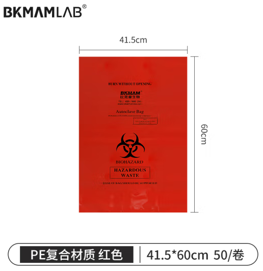 首页 > 用具 > 其他厨房用具 > 比克曼生物(BKMAM)危险品处理袋医疗垃圾袋耐高温高压灭菌废弃物垃圾袋 50个/袋 红色PE复合材质41.5*60cm (zhyghf_221720922)SKU:yzwhyp915497