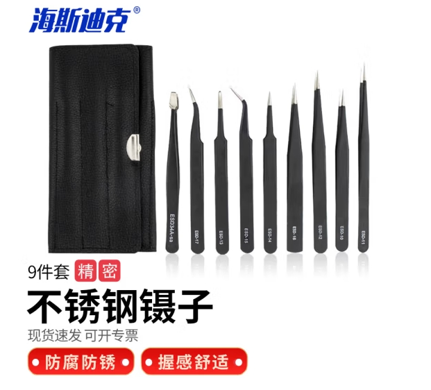 首页 > 建筑建材 > 手动工具 > 海斯迪克 HKCL-208 不锈钢精密超细尖头镊子 钟表电子实验室电路板静电维修工具 压边镊子 皮套ESD修边9件套 (zhyghf_27001259)SKU:yzwhyp915674