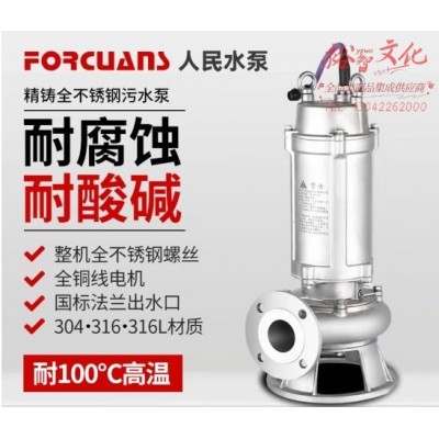 人民水泵上企奉泉人民不锈钢潜水排污泵无堵塞污水泵三相 1100W2寸220V (zhyghf_23001534)SKU:yzwhyp915787