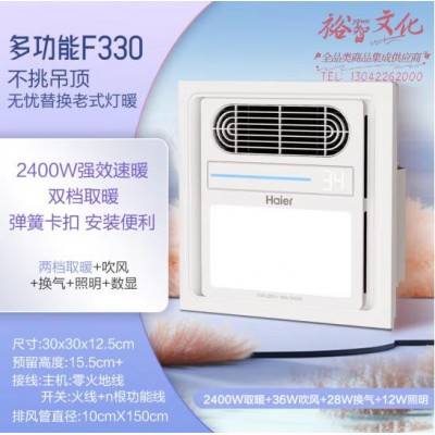 海尔风暖浴霸正方形小型暖风照明排气一体集成吊顶室内暖风机浴霸F330(zhyghf_23094340)SKU:yzwhyp915857