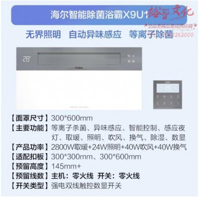 海尔浴霸智能风暖浴霸大功率等离子除菌浴室照明一体适用集成吊顶X9U1(zhyghf_23094334)SKU:yzwhyp915870