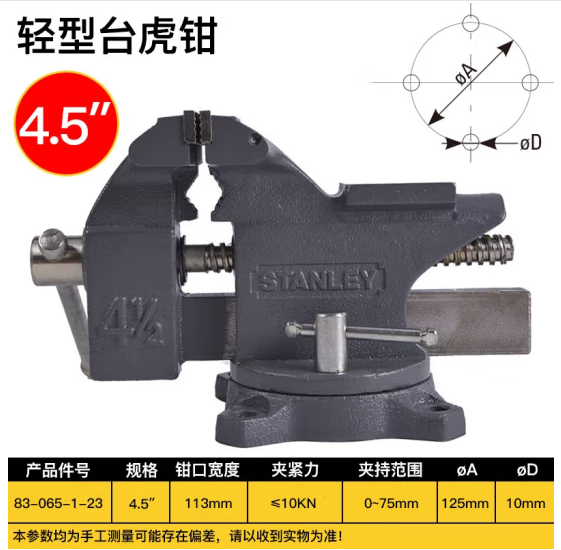 史丹利(STANLEY)轻型台虎钳维修固定钳夹持钳4.5英寸 83-065-1-23(zhyghf_23093544)SKU:yzwhyp915935