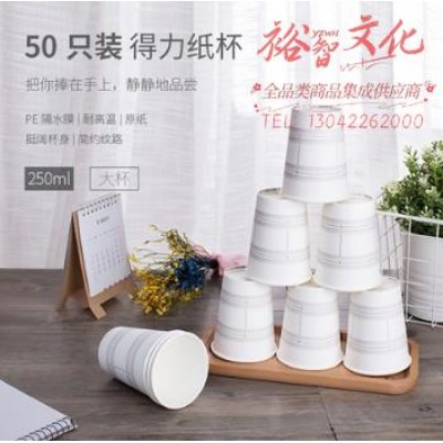 得力 19200 纸杯(白色)250ml50只280g太阳纸+18gPE膜 10包装SKU:yzwhyp916309