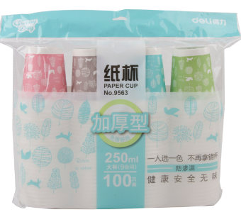 得力 9563 纸杯(混)(100个/袋)250ml240g五星纸 18gPE膜SKU:yzwhyp916317