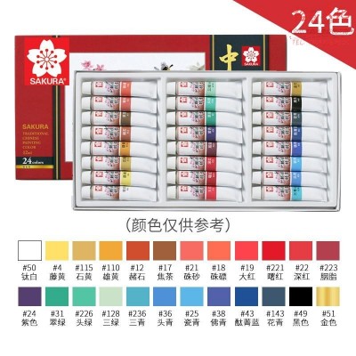 樱花(SAKURA)中国画颜料二十四色套装含金色 XTCW24 12ml/支SKU:yzwhyp916367