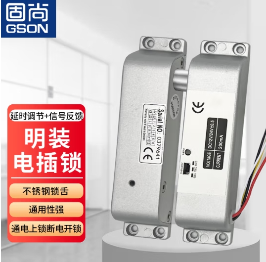 固尚GSON电插锁玻璃门电子门禁锁明装侧装 (SKU:yzwhyp9000627