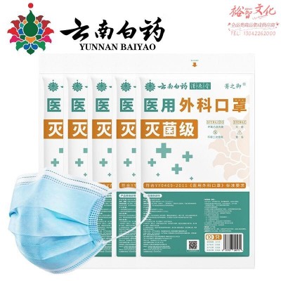云南 50只(5袋)灭菌型 口罩三层防护含熔喷布10只一袋SKU:yzwhyp916467