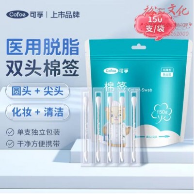 可孚 双头棉花棒150支【尖头 圆头】独立包装多用纸轴脱脂棉花 消毒掏耳清洁化妆 (SKU:yzwhyp9000369