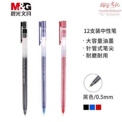 晨光 AGPY5501 大容量中性笔0.5mm全针管办公签字水笔 红色 12支装(SKU:yzwhyp9000236