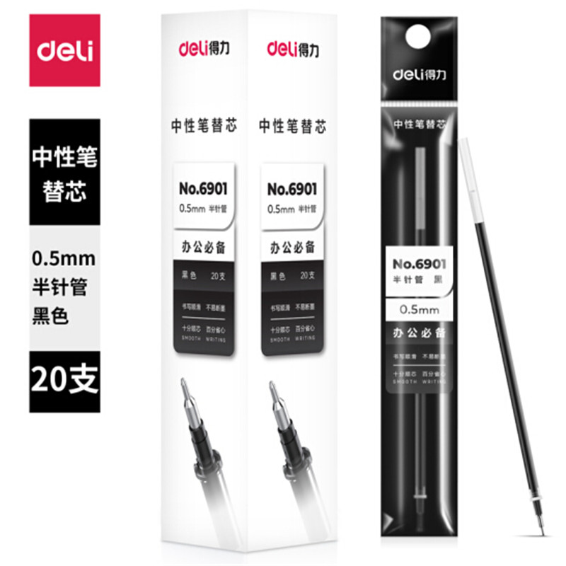 得力 6901中性笔芯0.5mm半针管(黑、红)20支/盒 单色单盒装 颜色随机(SKU:yzwhyp9000218