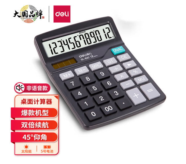 得力(deli) 黑色837 双电源轻便桌面计算器 12位大屏桌面计算机 办公用品(SKU:yzwhyp9000047