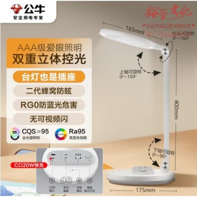 首页 > 电气设备 > 室内照明灯具 > 公牛(BULL)ML-E012D-CS 20W快充插座台灯 国AAA级护眼 防蓝光护视力台灯 卧室宿舍学生儿童学习台灯 无极调光 2位总控 (SKU:yzwhyp916811